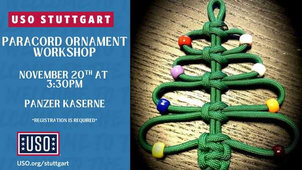 šāØ The holiday spirit is tying us all together at USO Stuttgart! Join us for a Paracord Ornament Workshop, led by the incredibly talented and crafty Peter, one of our amazing volunteers!