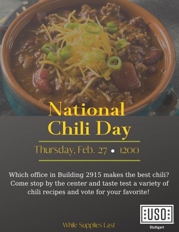 Which office in Building 2915 makes the best chili? We aim to find out by holding a friendly chili cook-off in celebration of National Chili Day! Stop by the center and taste test a variety of chili recipes and vote for your favorite!