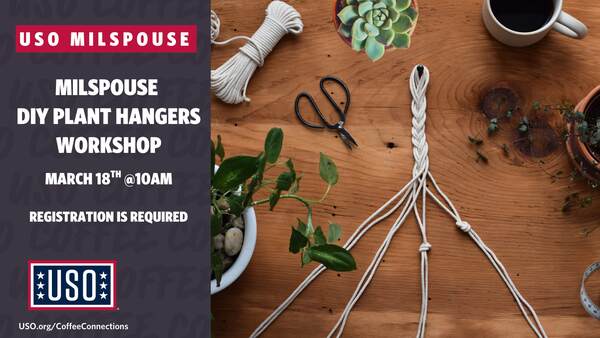 Add a little life (and greenery) to your space! Join us for a hands-on DIY Plant Hanger Workshop hosted by the USO, where creativity meets calm. We’ll guide you step-by-step as you knot, loop, and craft a plant hanger you’ll be proud to hang up. No experience needed—just come ready to create, connect, and leaf with something handmade.