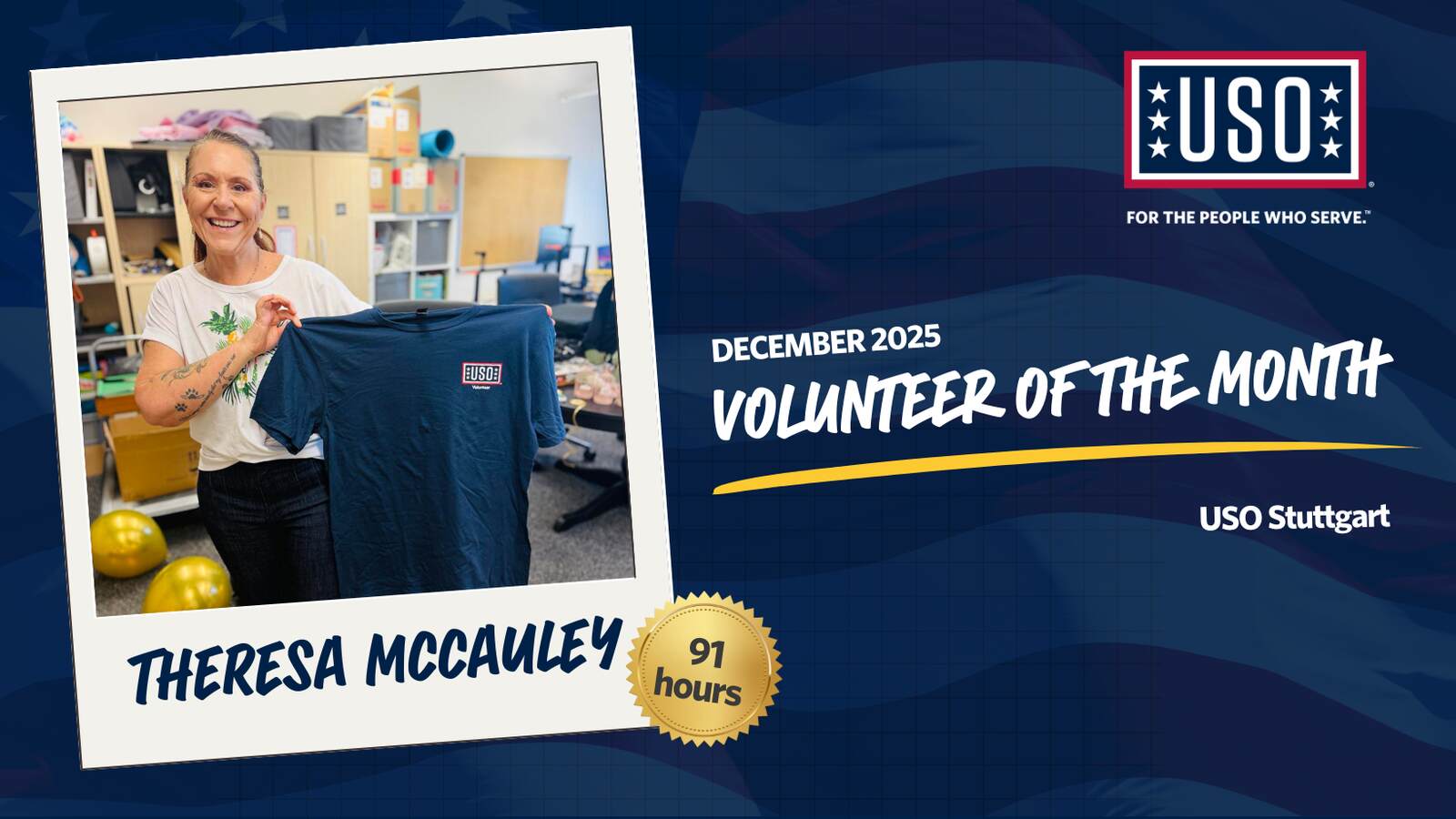 Introducing Theresa McCauley, USO Stuttgart’s December 2025 Volunteer of the Month!!