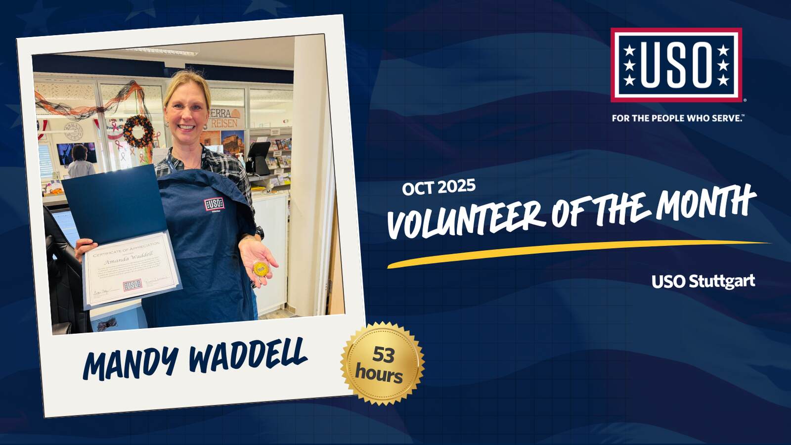 Introducing Mandy Waddell, USO Stuttgart’s October 2025 Volunteer of the Month!!